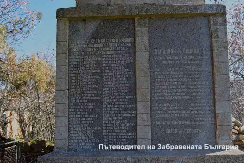Паметник красавец-непоклатим през годините, се издига до църковния зид. Поклон на населението на с. Сив Кладенец пред загиналите в опожарената църква и загиналите във войните – дядо Иван Русков, убит при завоя на река Черна, Епирска Македония.